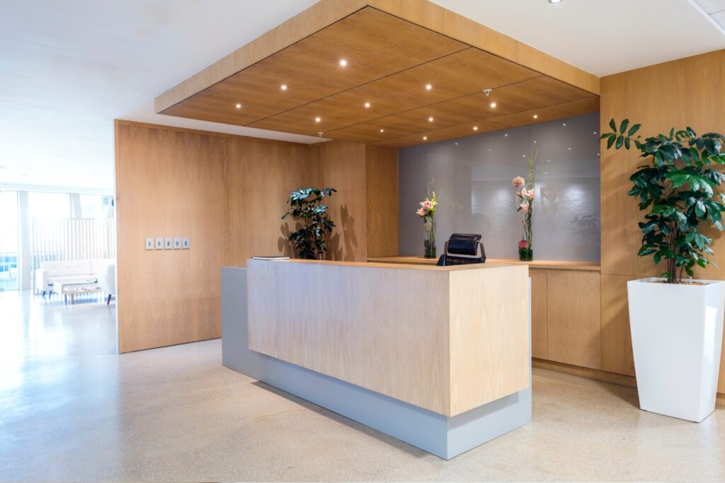 - Waiting room seating and coffee stations